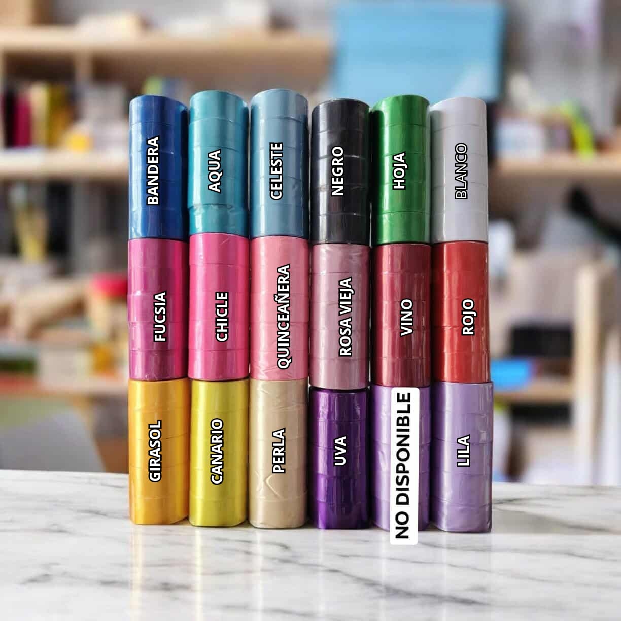 | Colores listón 25ydsX1-1/2" | BANDERA, AQUA, CELESTE, NEGRO, HOJA, BLANCO, FUCSIA, CHICLE, QUINCEAÑERA, ROSA VIEJA, VINO, ROJO, GIRASOL, CANARIO, PERLA, UVA, LILA |